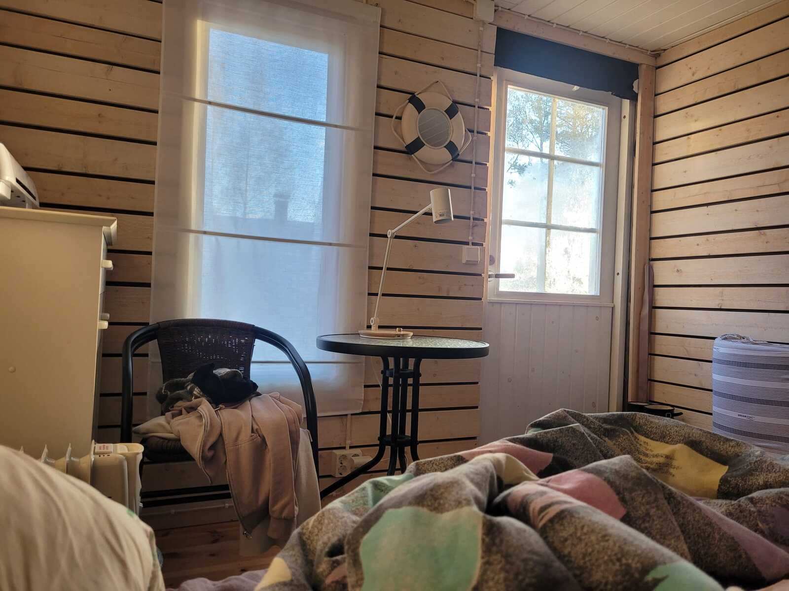 | Makuuhuone | Seinät: puu Lattia: lauta |