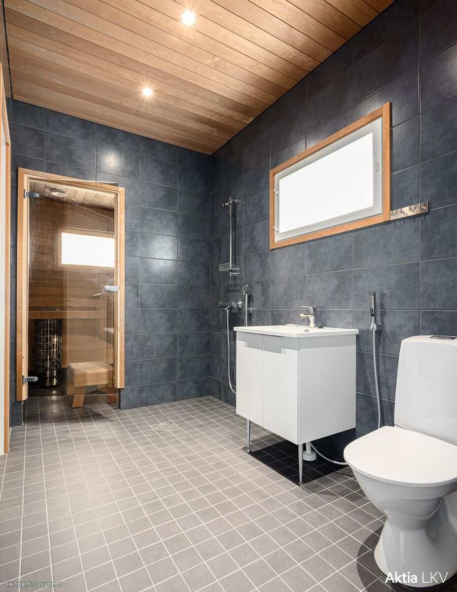 | Saunan pinnat | Seinät: puu Lattia: laatta |
