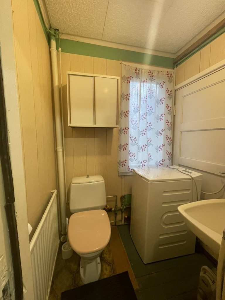 | Saunan kuvaus | Pesutilat saunatiloissa, yläkerrassa uusi suihkukaappi mikäli uusi omistaja haluaa tehdä keskikerrokseen suihkutilan |