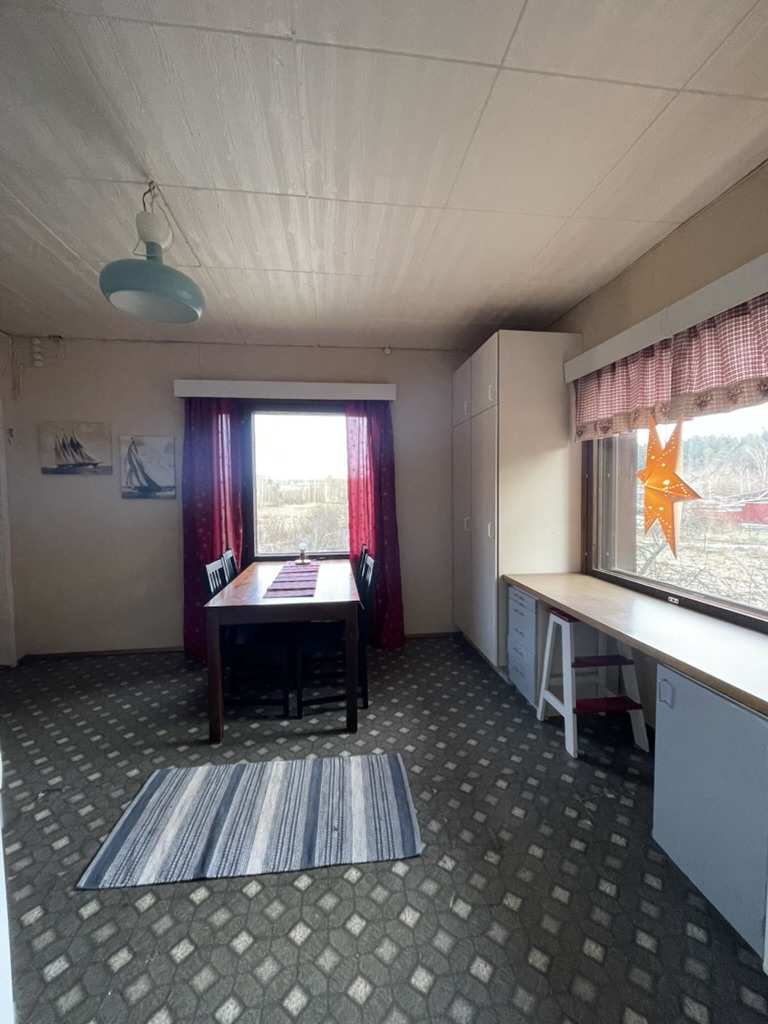 | Olohuone | Seinät: tapetti Lattia: muovi |