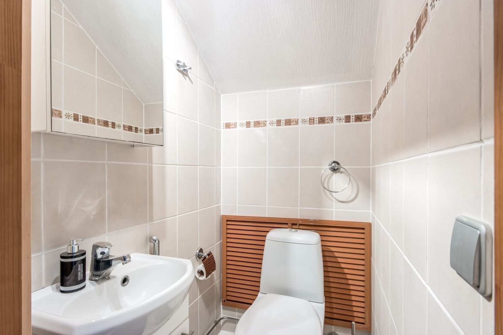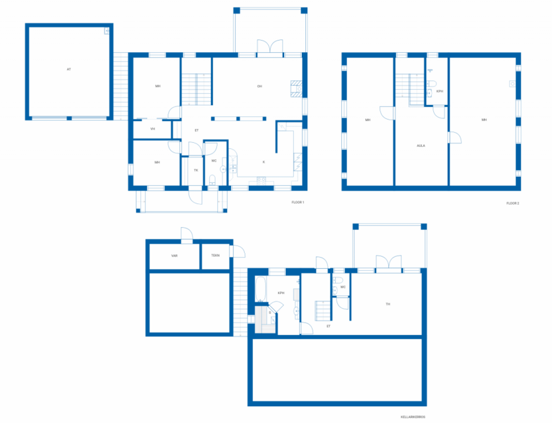 | Erillinen WC | Lattia: laatta Varusteet: lattialämmitys, lattiakaivo, suihku, bidee-suihku Seinät: kaakeli Lukumäärä: 3 |