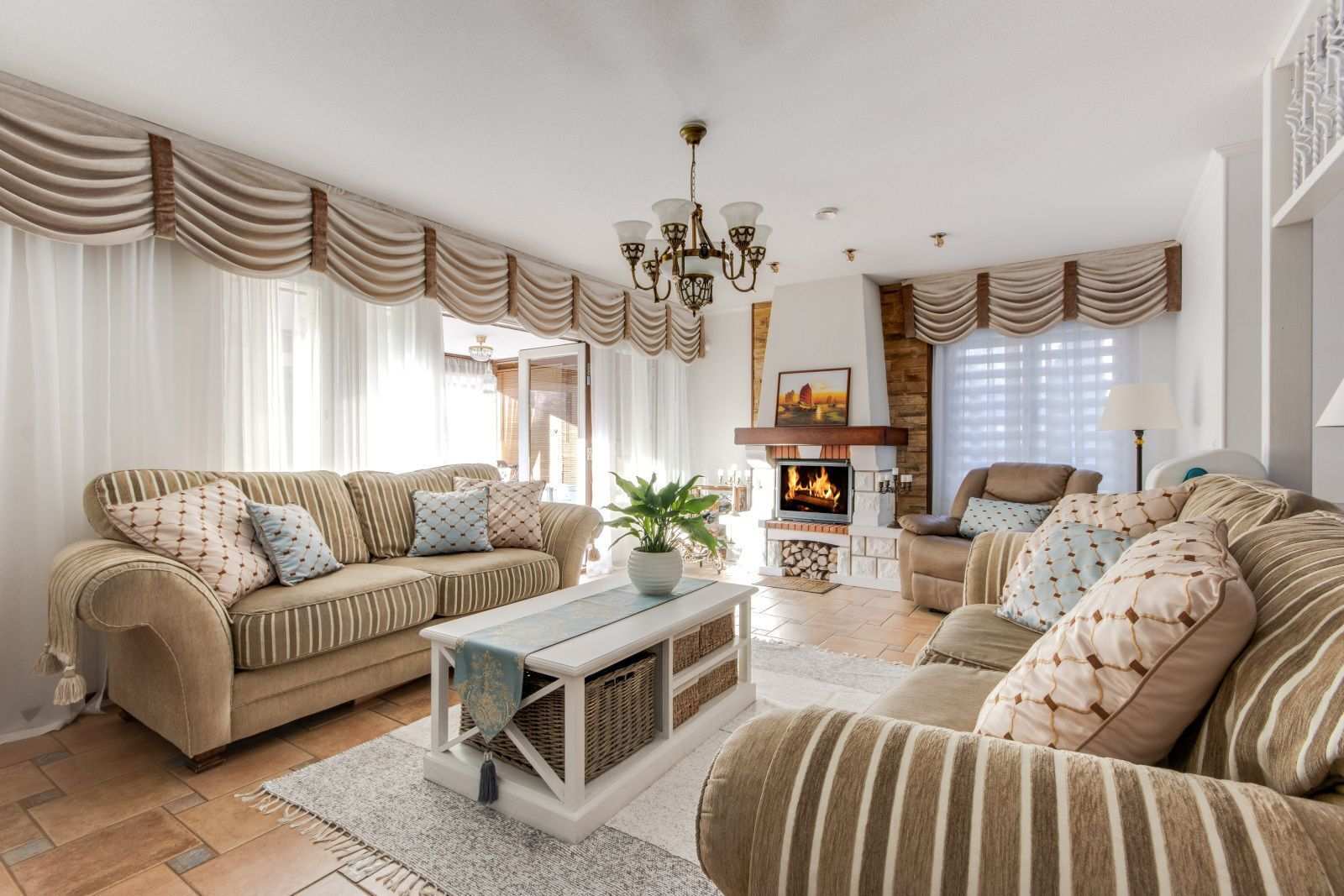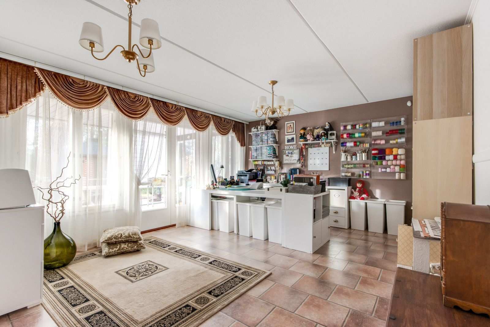 | Olohuone | Seinät: tapetti Lattia: laatta |