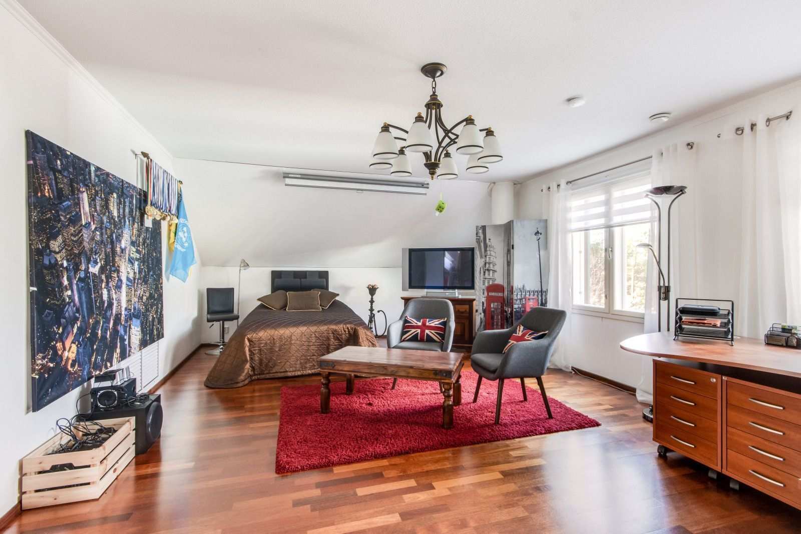 | Makuuhuone | Seinät: tapetti Lattia: parketti, laminaatti |