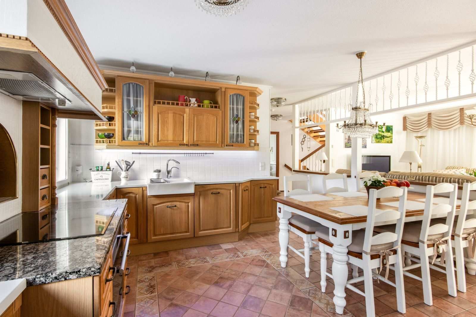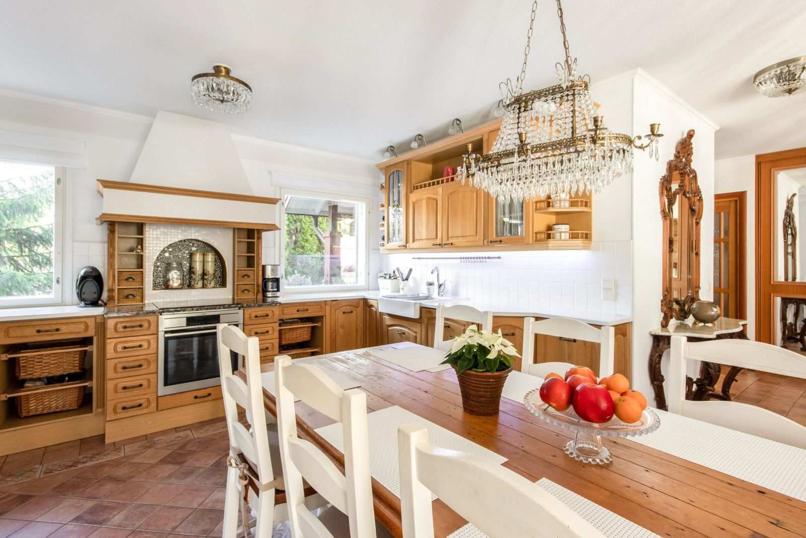 | Keittiön varustus | Jääkaappi ja pakastin: jääkaappi, pakastin Seinät: maalattu, tapetti Lattia: laatta Muut varusteet: liesituuletin, mikroaaltouuni, astianpesukone Liesi/uuni: keraaminen, integroitu, erillisuuni |