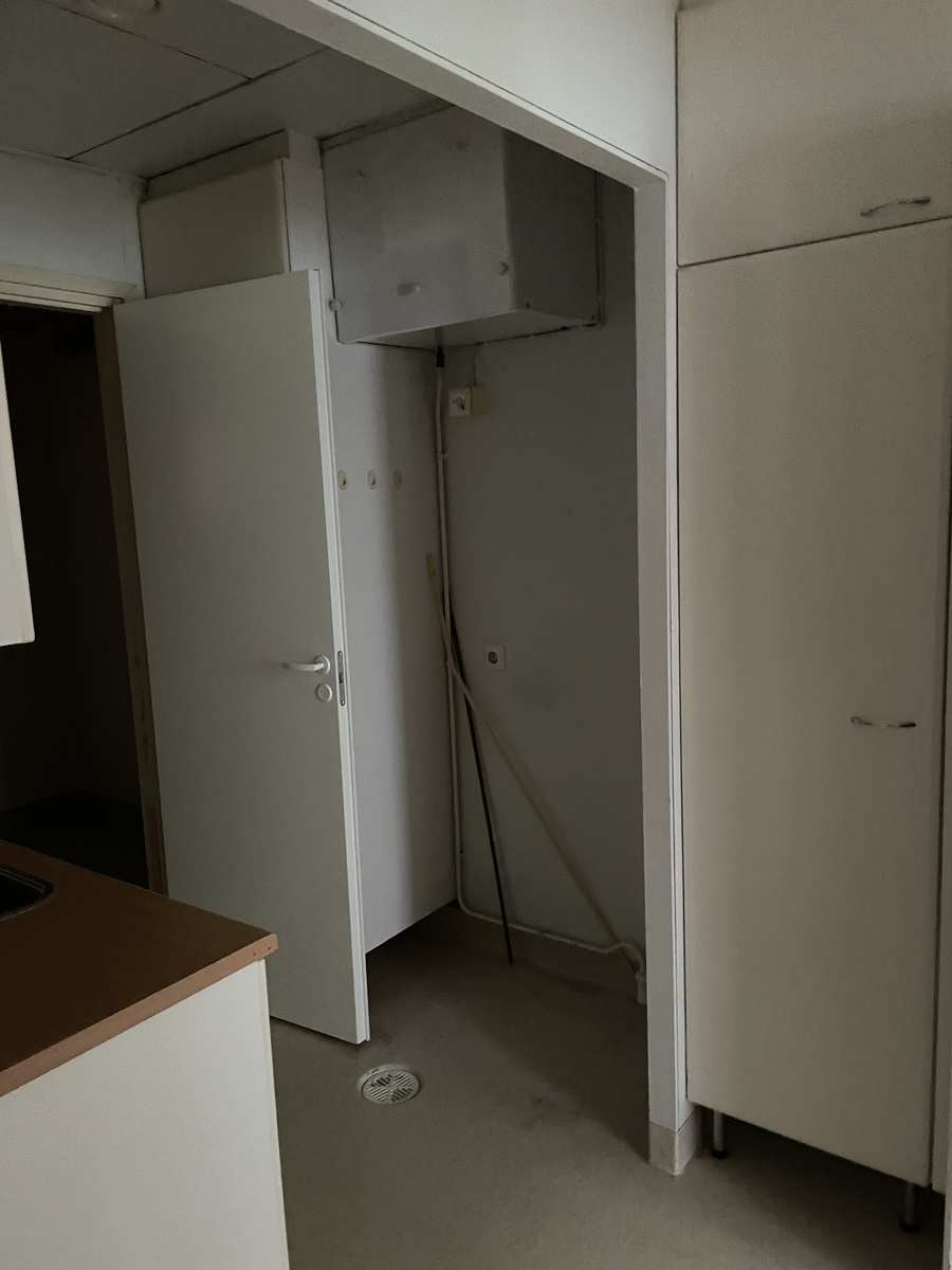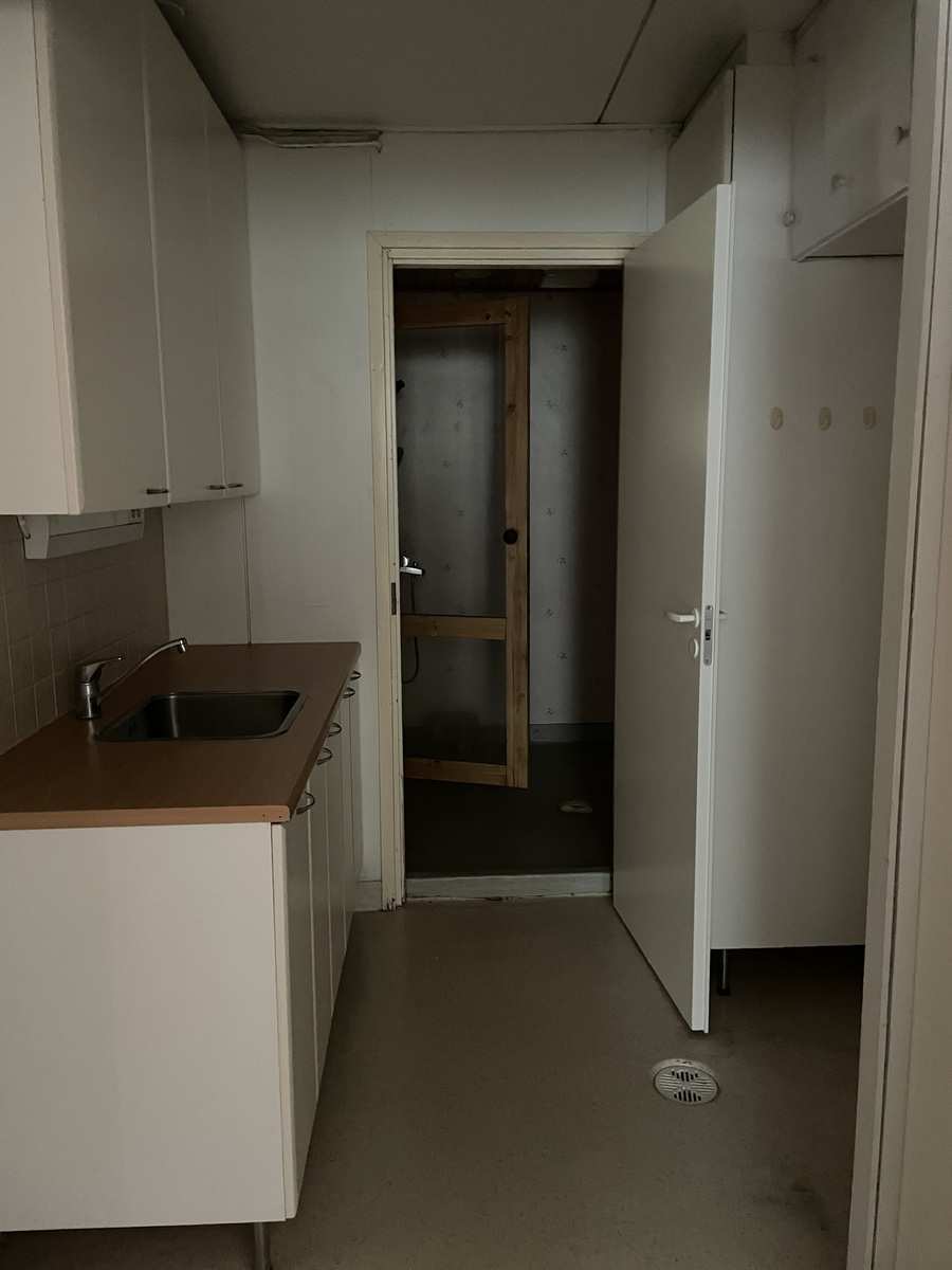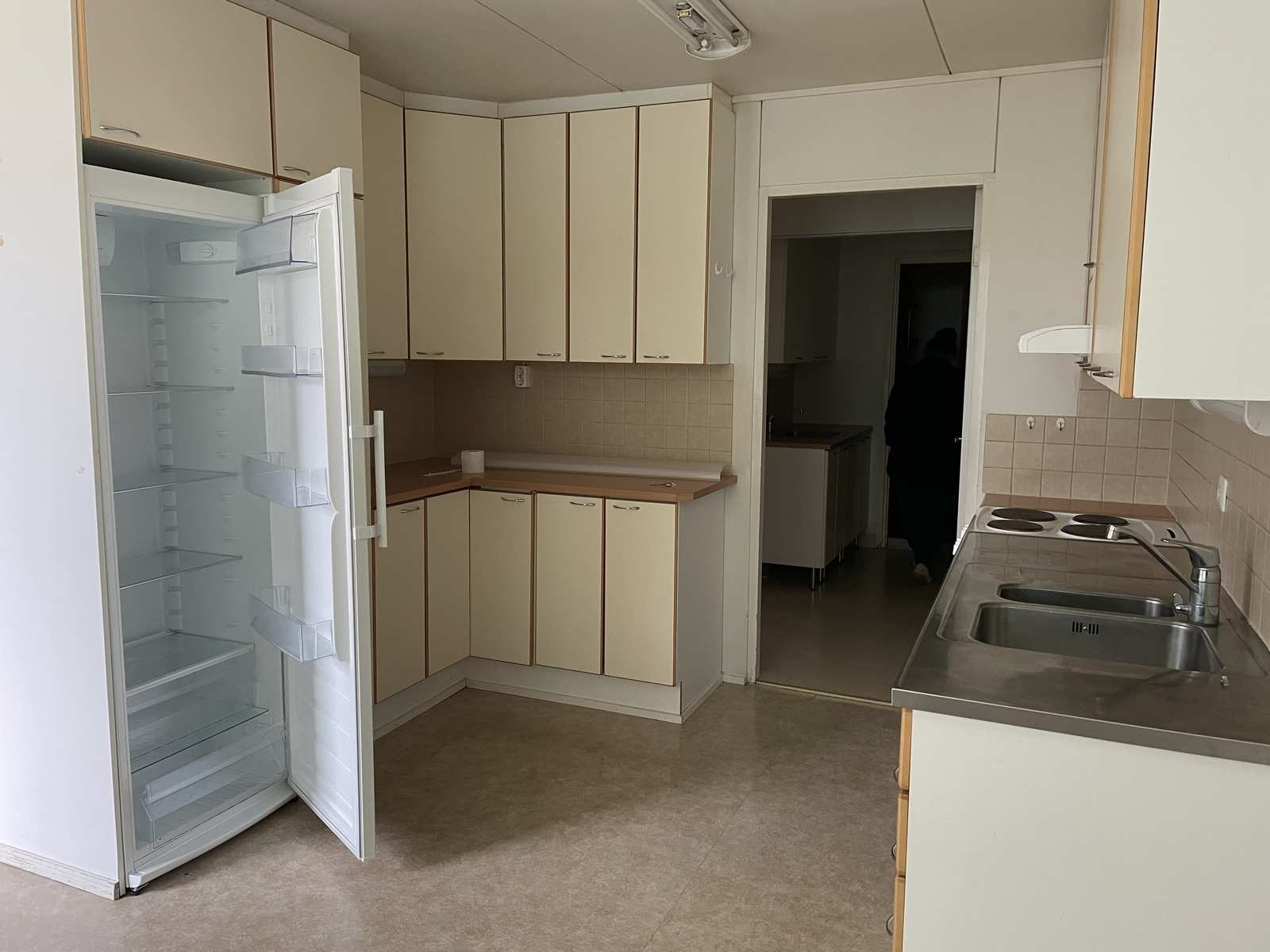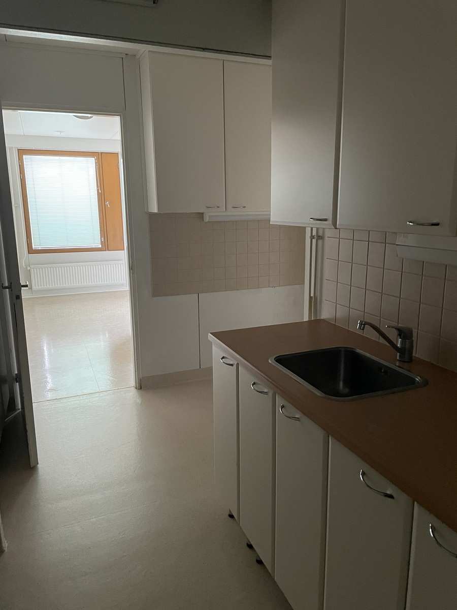 | Keittiön varustus | Jääkaappi ja pakastin: jääkaappi/pakastin Seinät: maalattu Lattia: muovi Muut varusteet: liesituuletin, varattu paikka astianpesukoneelle Liesi/uuni: sähköliesi |