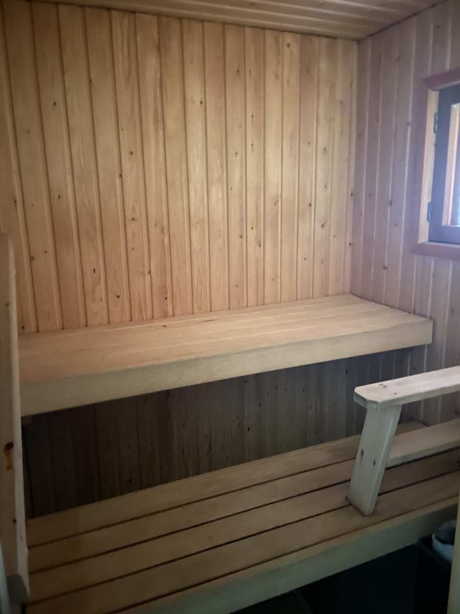 | Saunan pinnat | Seinät: puu Lattia: muovi |