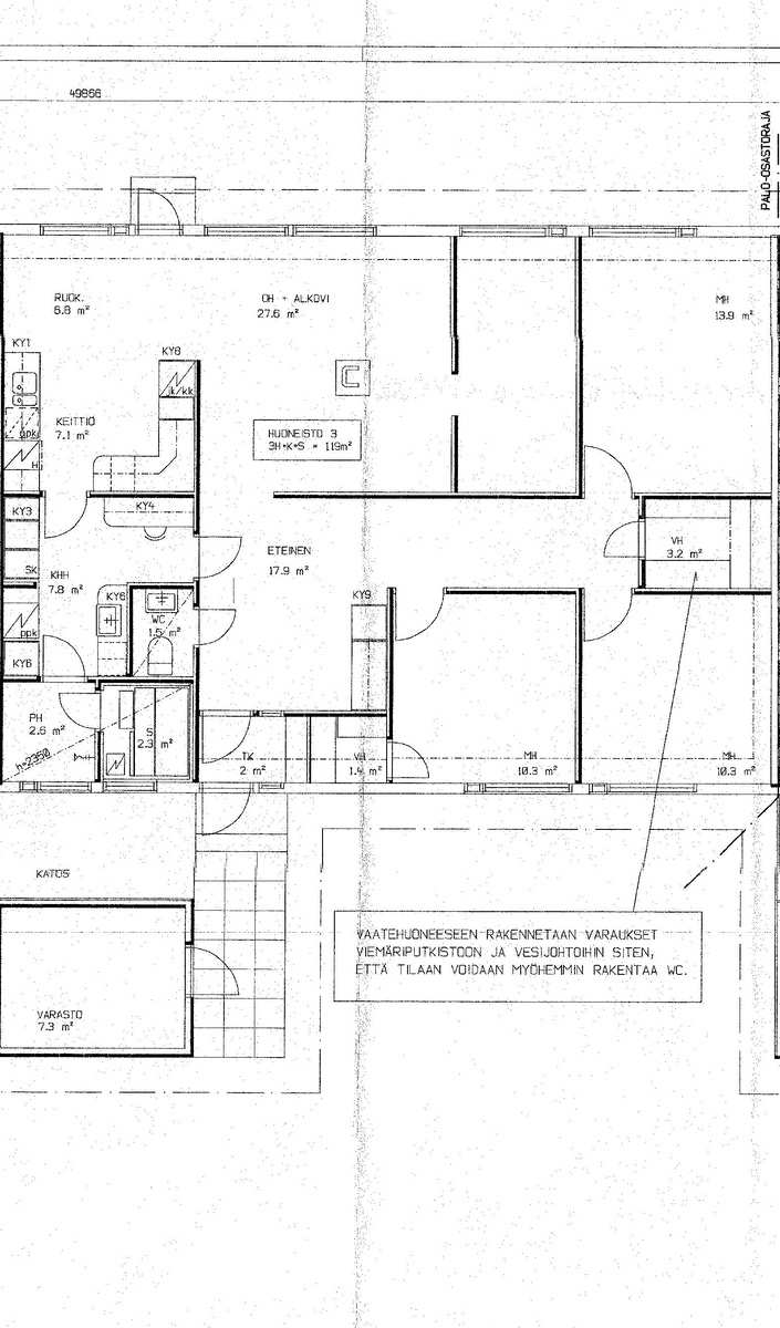 | Kodinhoitohuone | Seinät: maalattu, tapetti Varusteet: pesukoneliitäntä, lattiakaivo, pyykkikaapit, pöytätaso Lattia: muovi |