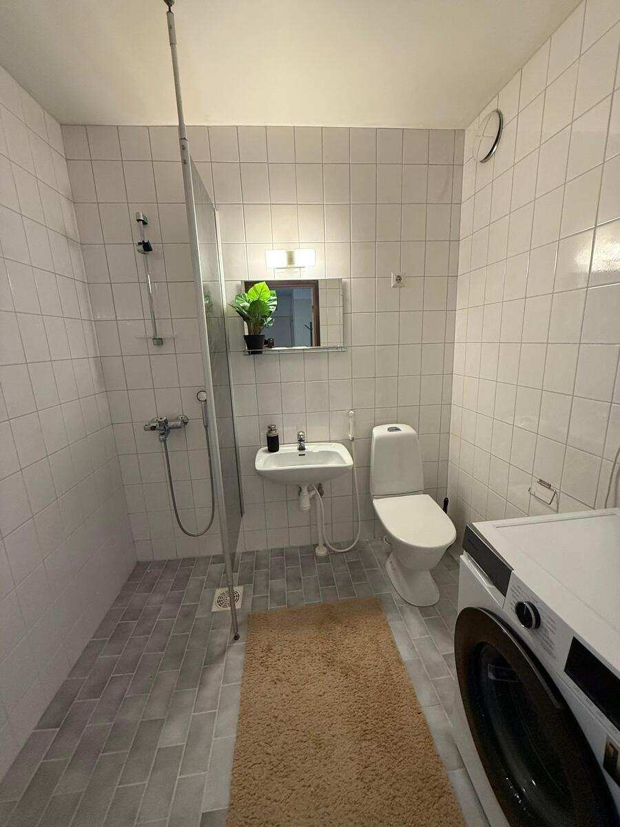| Kylpyhuone | Varusteet: suihkuseinä, pesukone, pesukoneliitäntä, wc-istuin, suihku Seinät: kaakeli Lattia: laatta |