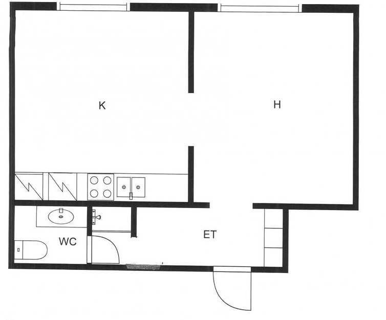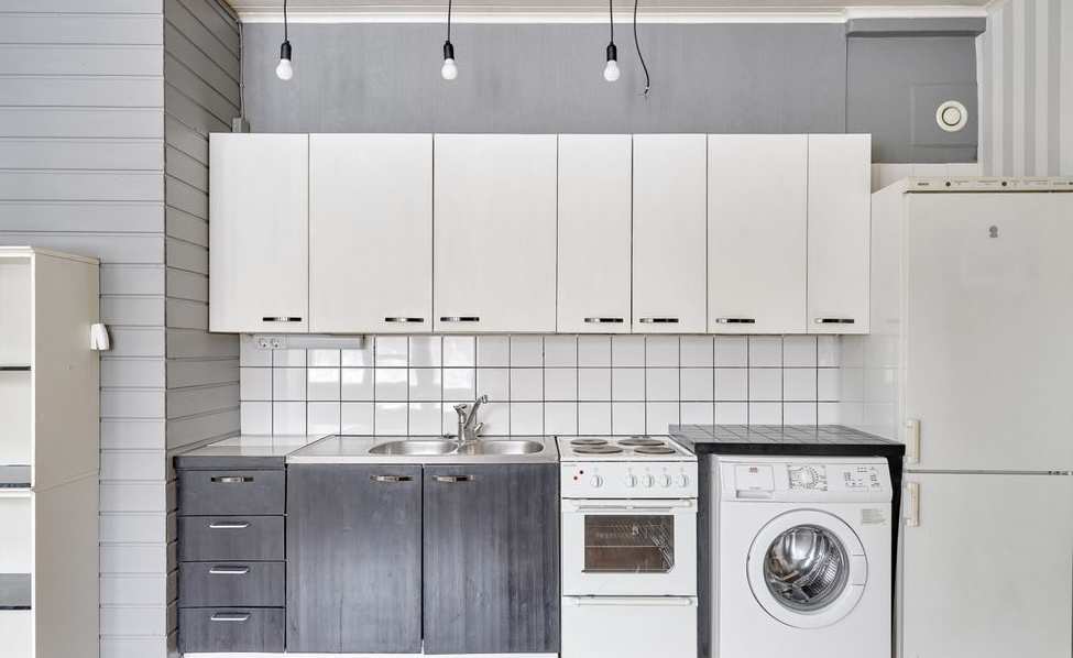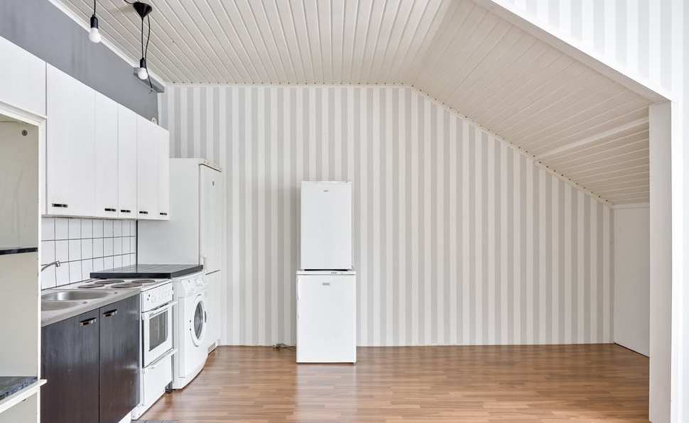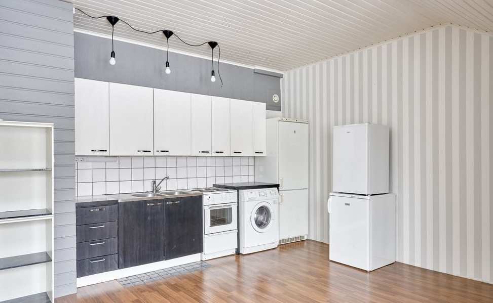 | Keittiön varustus | Jääkaappi ja pakastin: jääkaappi, pakastin Seinät: maalattu, puu Lattia: laminaatti Liesi/uuni: sähköliesi |