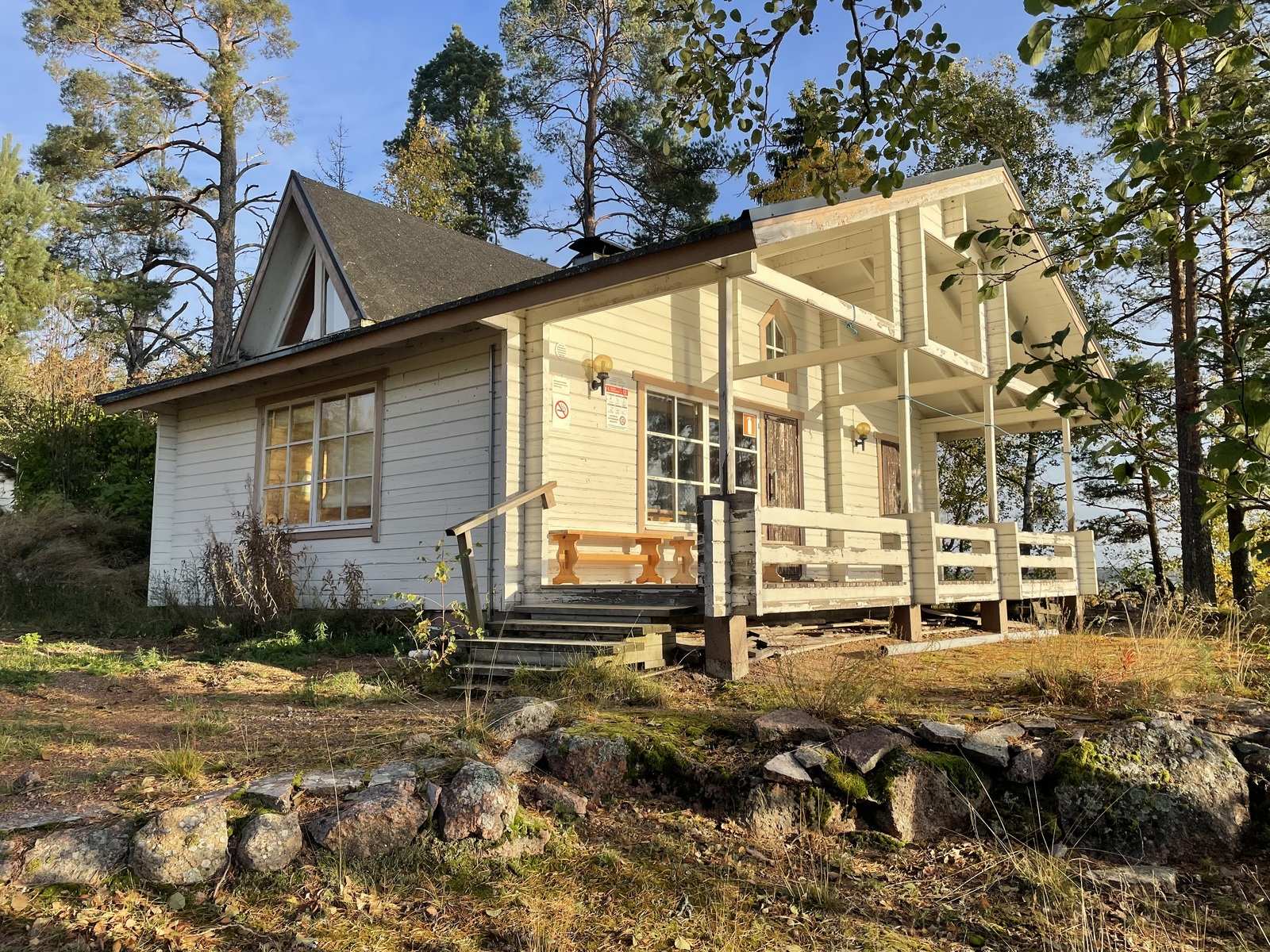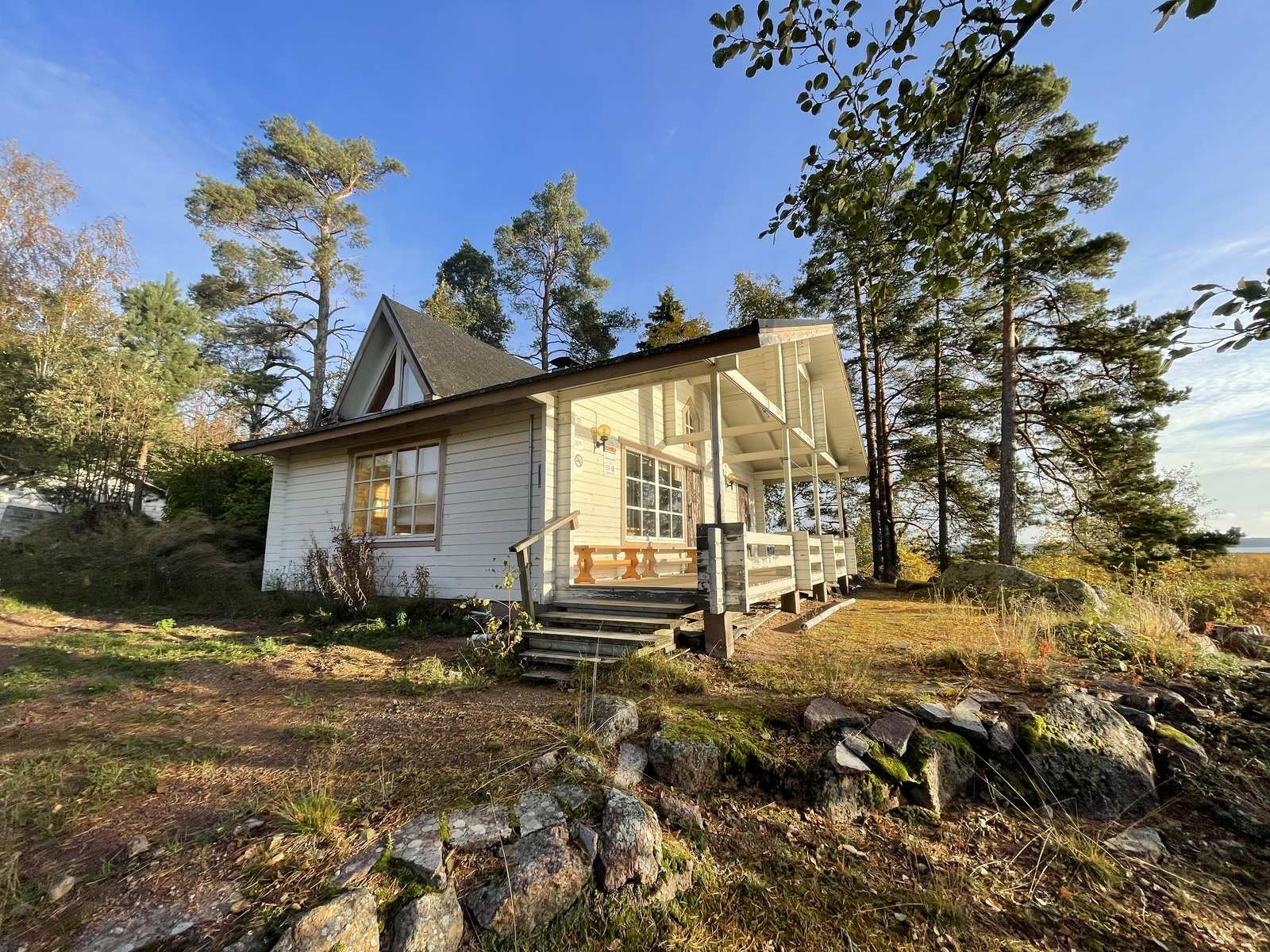 Upealla paikalla omassa n. 4,6 ha:n suuruisessa niemessään reilunkokoinen aiemmin leirikeskuksena toiminut vuonna 1996 valmistunut päärakennus ja aivan rannassa rantasauna!