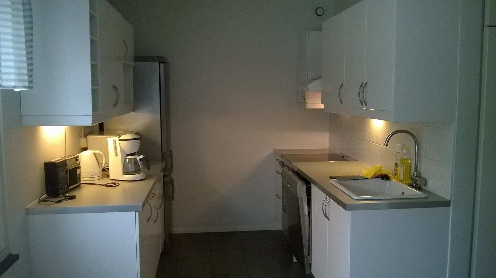 | Keittiön varustus | Jääkaappi ja pakastin: jääkaappi/pakastin Muut varusteet: liesituuletin, astianpesukone Seinät: maalattu Lattia: laatta, laminaatti Liesi/uuni: keraaminen |