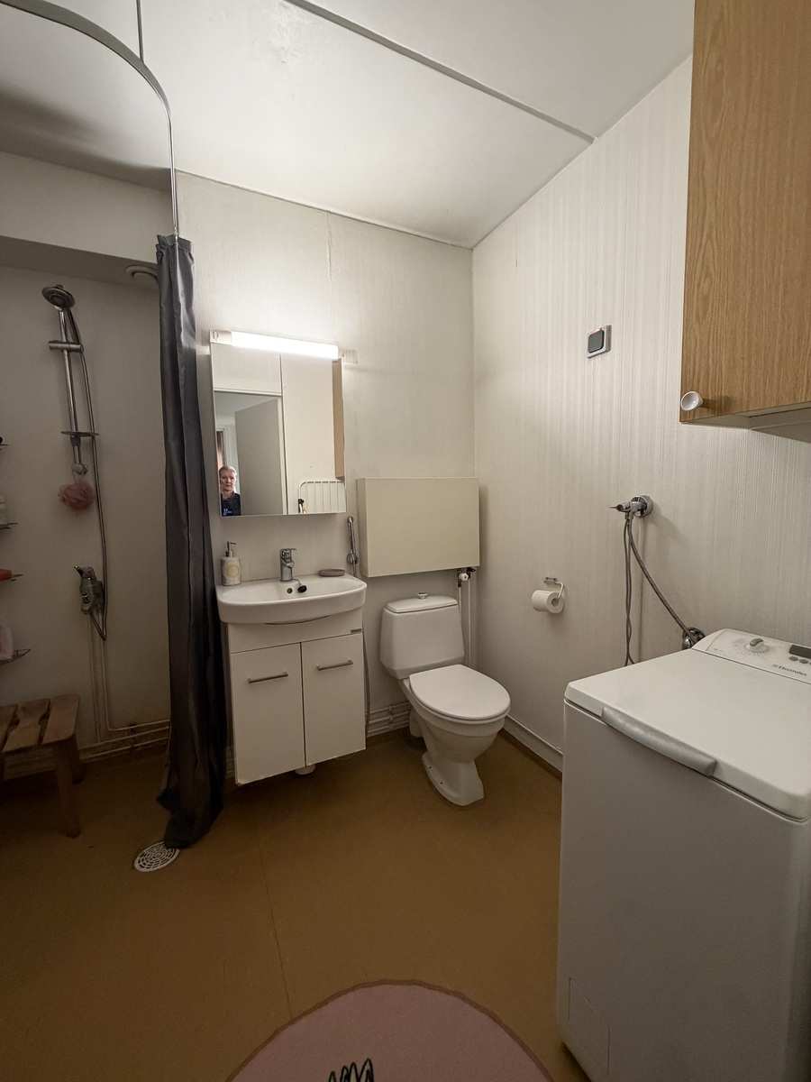 | Kylpyhuone | Varusteet: pesukoneliitäntä, wc-istuin, suihku, peilikaappi Seinät: muovi Lattia: muovi |
