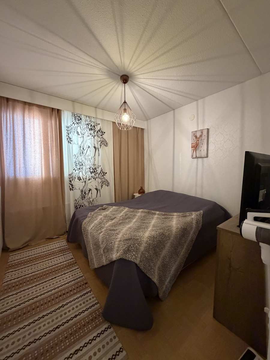 | Makuuhuone | Seinät: maalattu, tapetti Lattia: muovi |