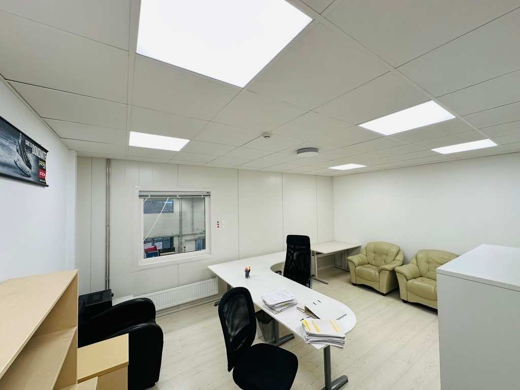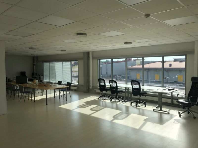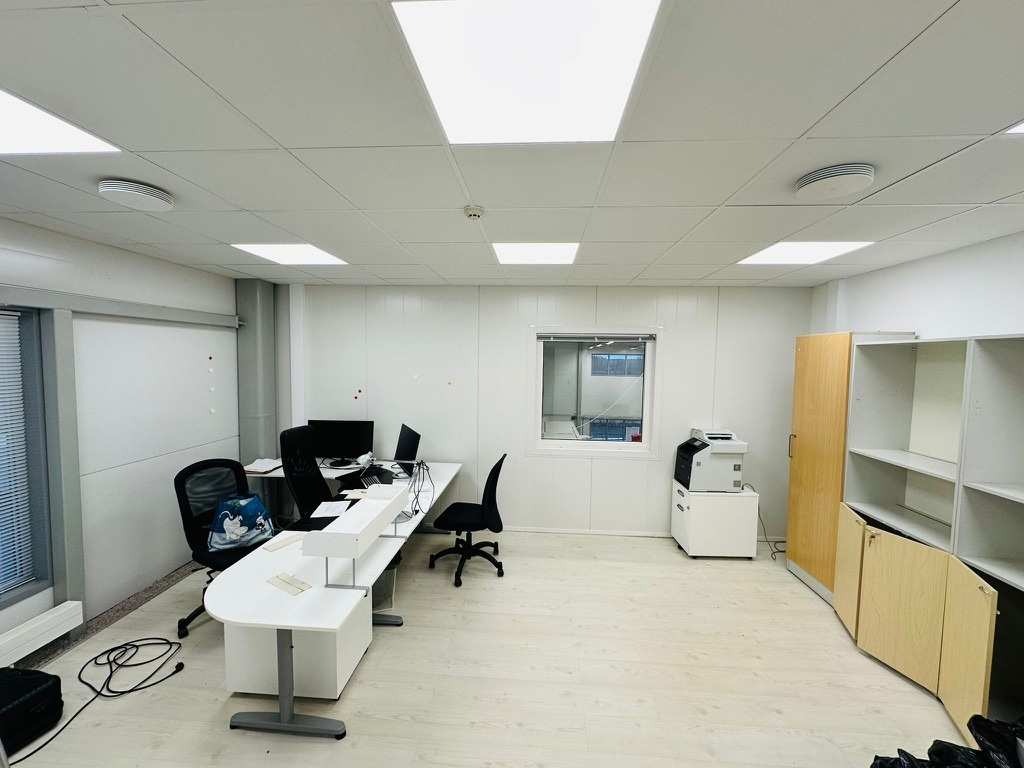 | Seinät | Toimistotilojen seinäpinnat pääosin maalattuja, liiketilojen seinät valkoiseksi maalattua peltielementtiä |