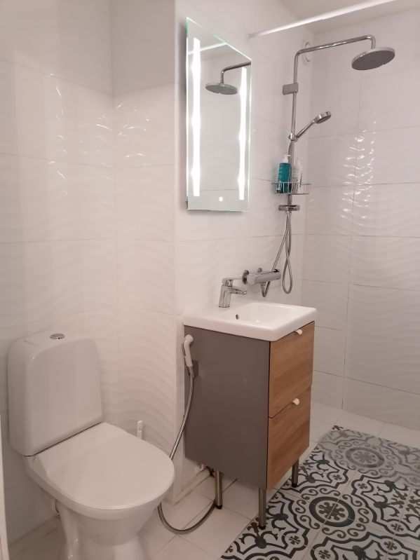 | Kylpyhuone | Varusteet: kylpyamme, pesukoneliitäntä, wc-istuin, suihku, peilikaappi, kylpyhuonekaapisto Seinät: kaakeli Lattia: laatta |