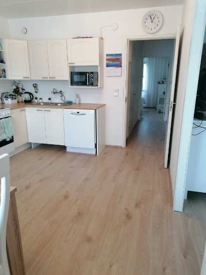 | Keittiön varustus | Jääkaappi ja pakastin: jääkaappi/pakastin Muut varusteet: liesituuletin, astianpesukone Seinät: maalattu Lattia: laminaatti Liesi/uuni: sähköliesi |