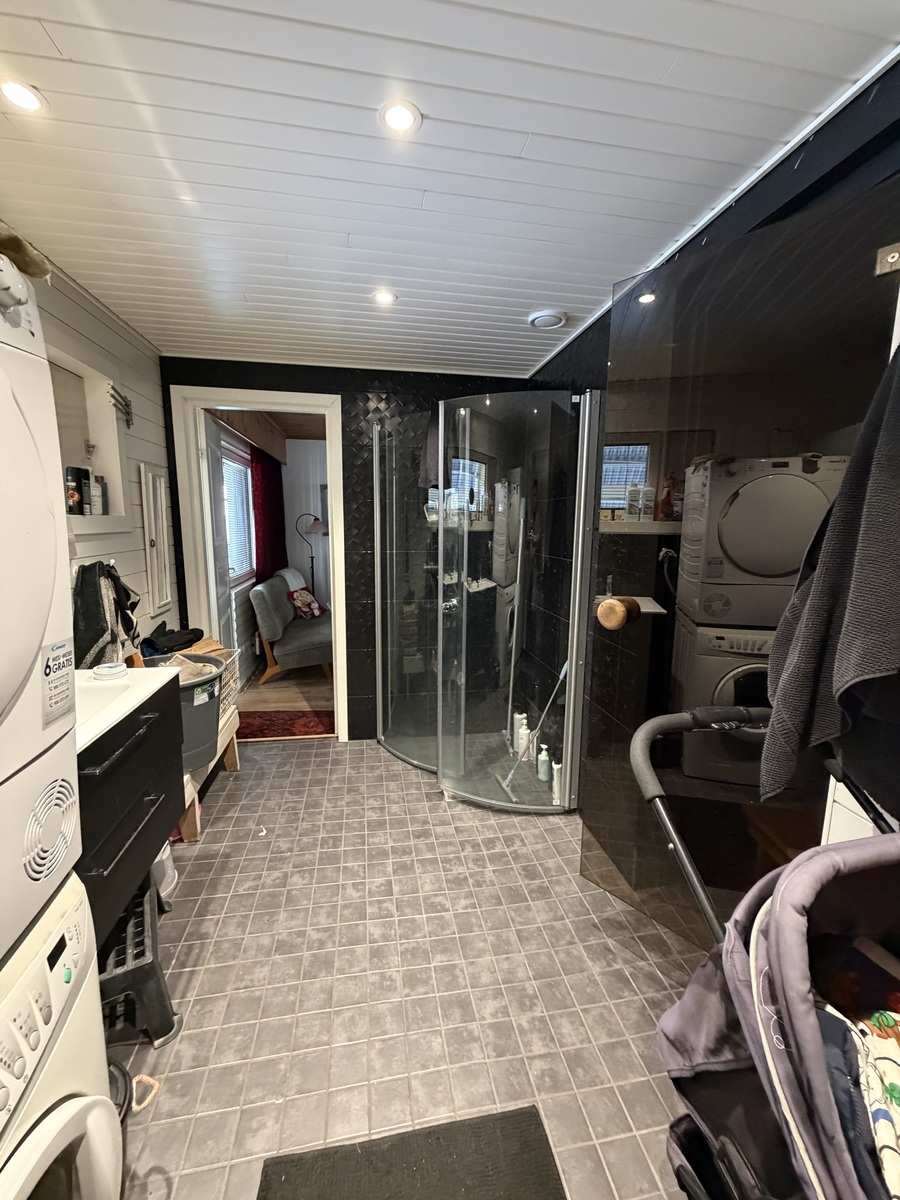 | Kylpyhuone | Varusteet: pesukoneliitäntä, suihku Seinät: kaakeli Lattia: laatta |