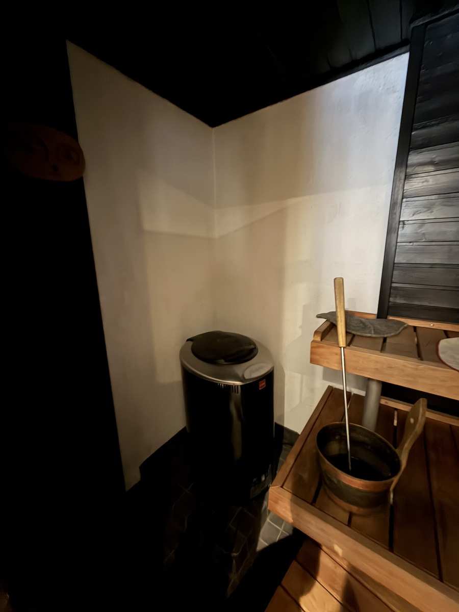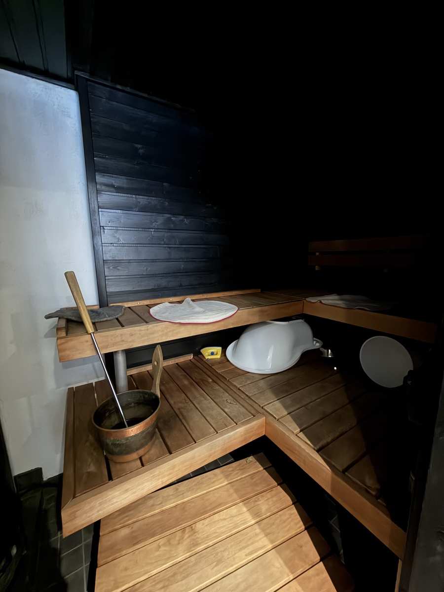 | Saunan pinnat | Seinät: puu Lattia: laatta |