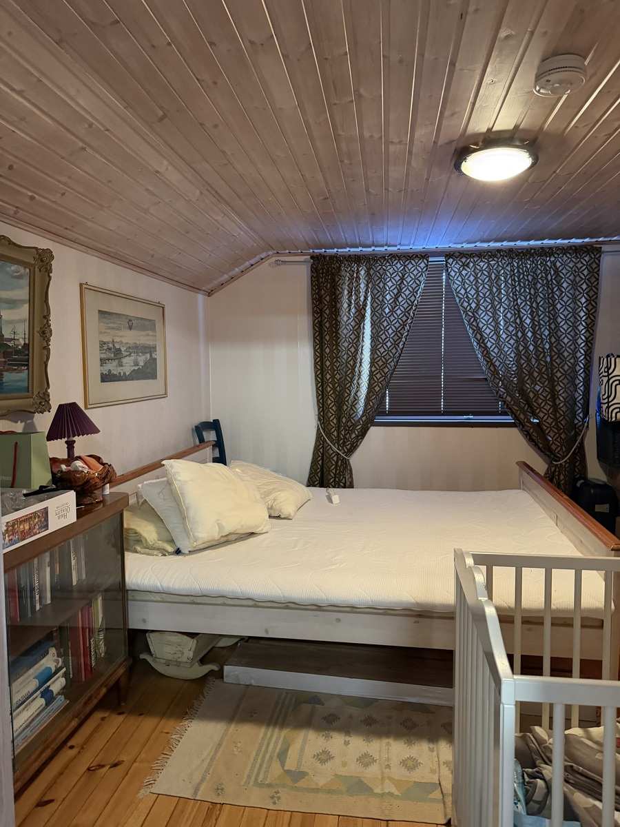 | Makuuhuone | Seinät: maalattu, tapetti Lattia: laatta, lauta |