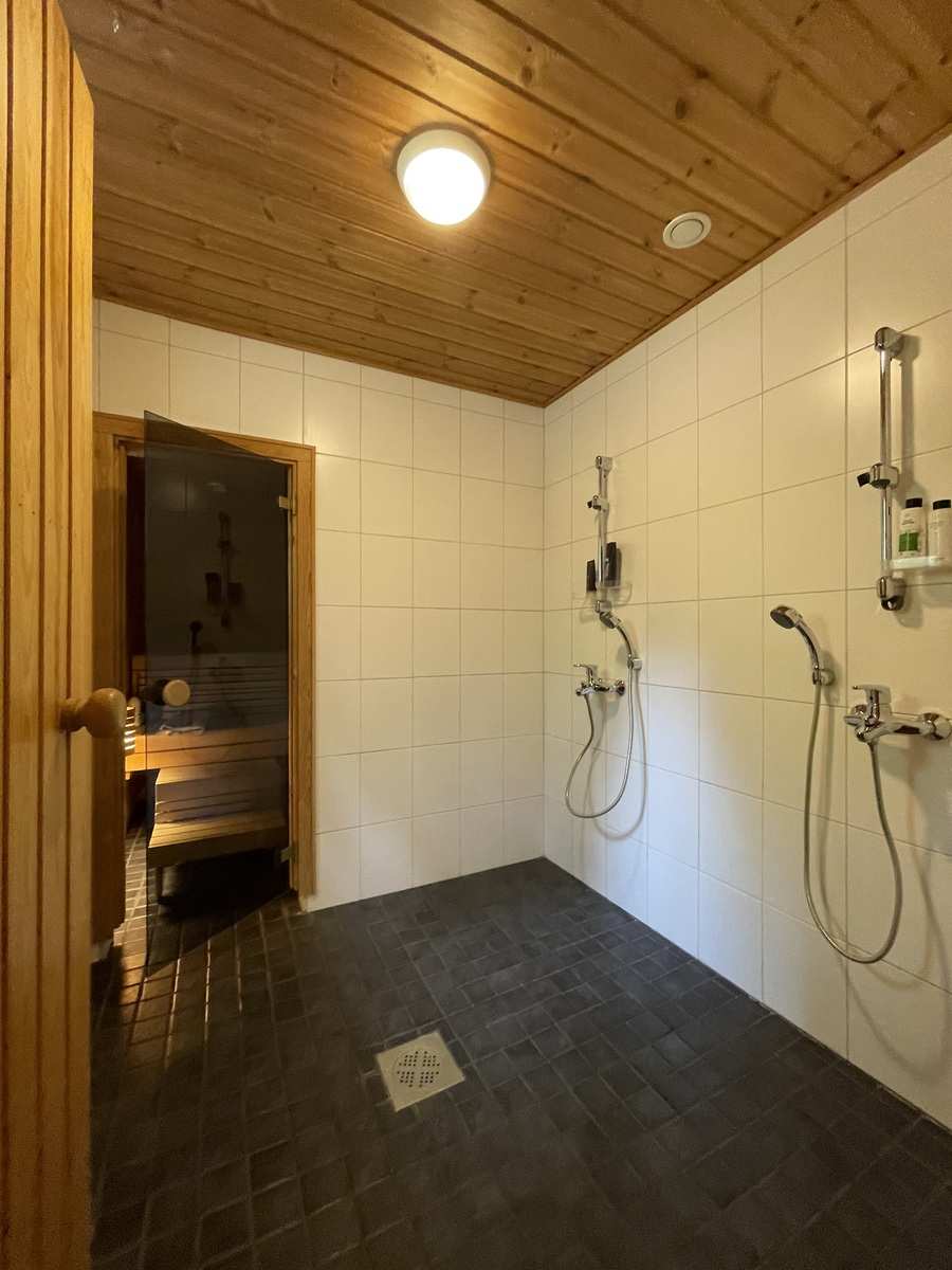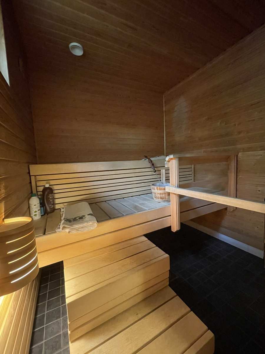 | Saunan pinnat | Seinät: puu Lattia: laatta |