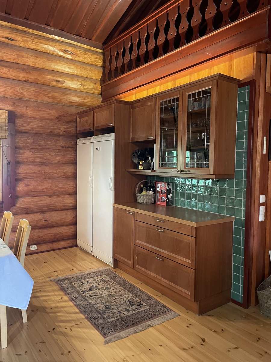| Keittiön varustus | Jääkaappi ja pakastin: jääkaappi, pakastin Seinät: puu Lattia: lauta Muut varusteet: liesituuletin, astianpesukone Liesi/uuni: keraaminen, puuliesi |