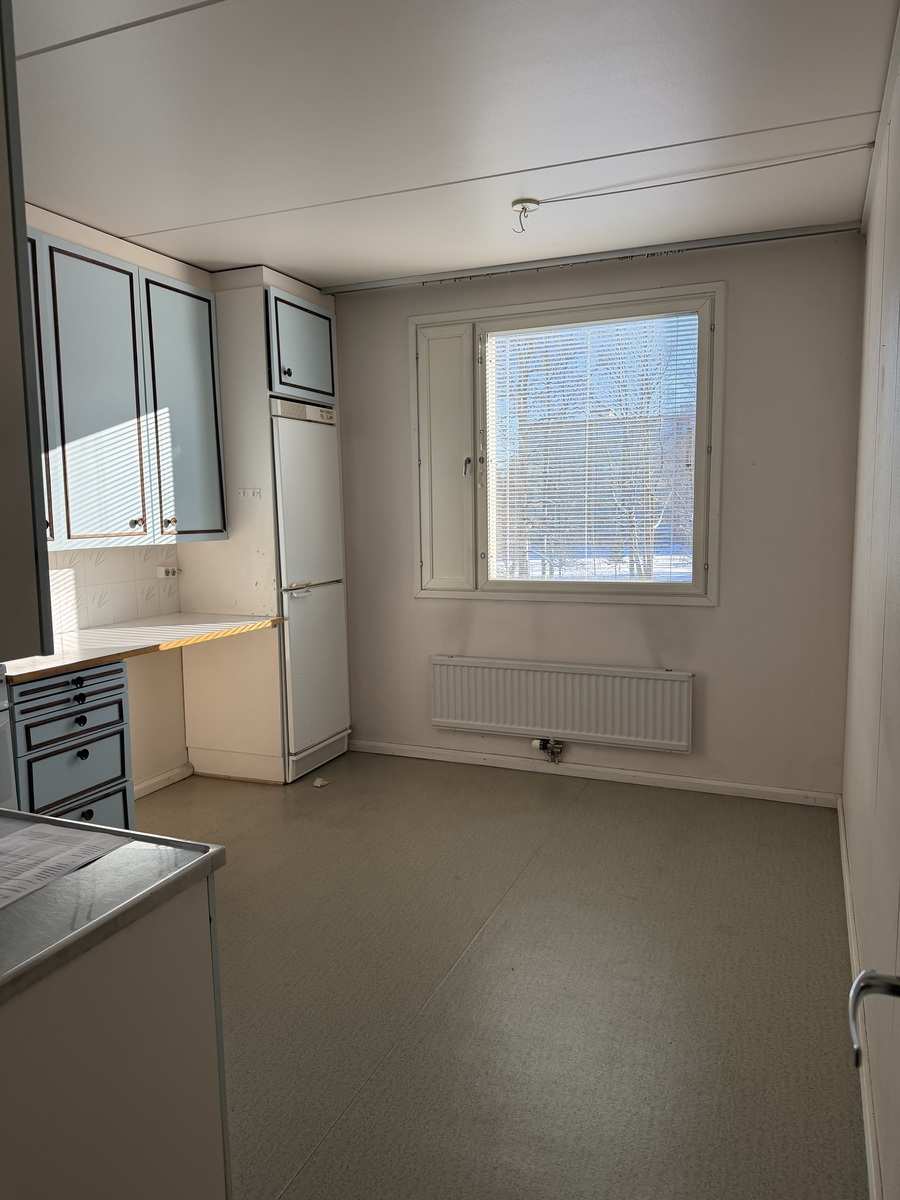 | Keittiön varustus | Jääkaappi ja pakastin: jääkaappi/pakastin Seinät: maalattu Lattia: muovi Liesi/uuni: sähköliesi |