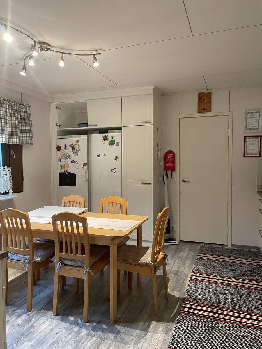 | Keittiön varustus | Jääkaappi ja pakastin: jääkaappi, pakastin Muut varusteet: liesituuletin, astianpesukone Seinät: maalattu Lattia: laminaatti Liesi/uuni: sähköliesi |