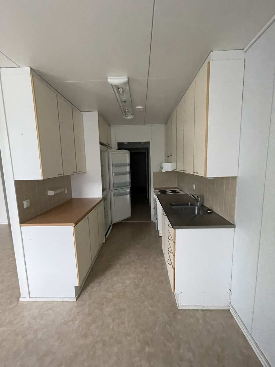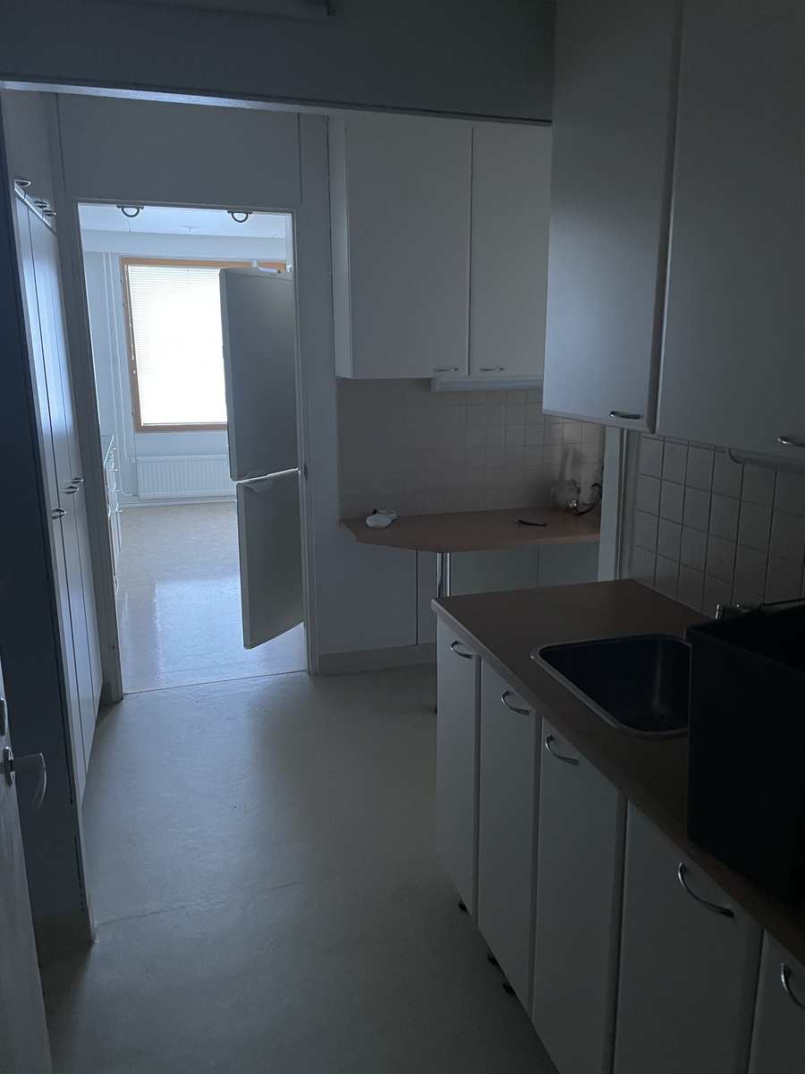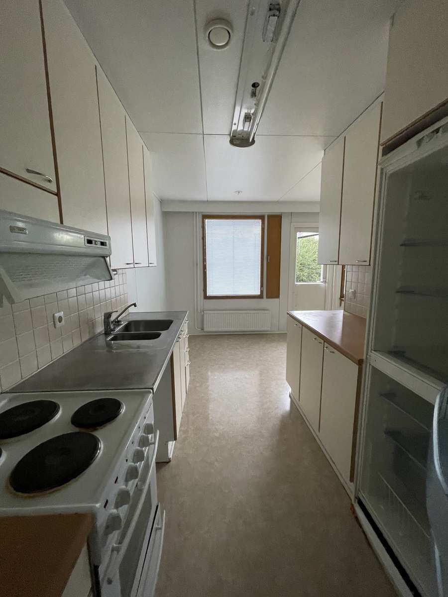 | Keittiön varustus | Jääkaappi ja pakastin: jääkaappi/pakastin Seinät: maalattu Lattia: muovi Muut varusteet: liesituuletin, varattu paikka astianpesukoneelle Liesi/uuni: sähköliesi |