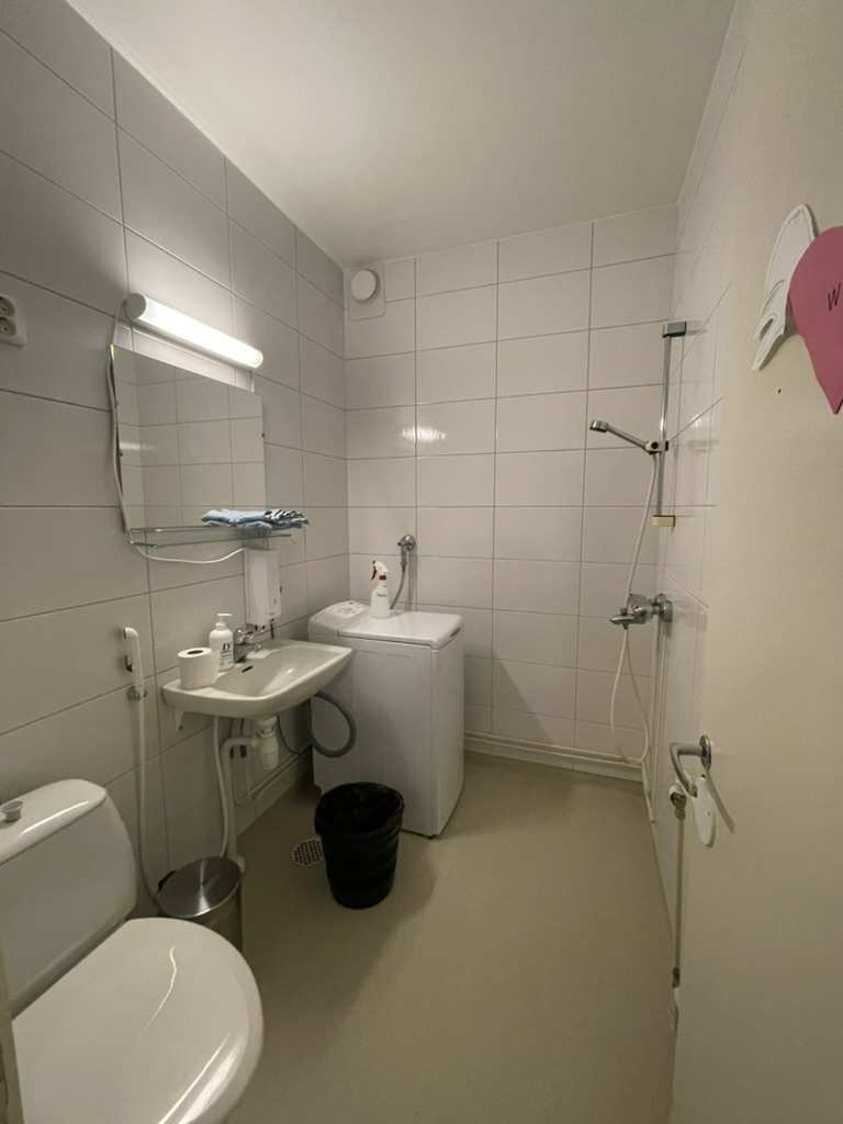 | Kylpyhuone | Varusteet: pesukoneliitäntä, wc-istuin, suihku Seinät: muovi, osalaatoitus Lattia: muovi |